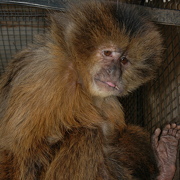 | Ejemplar confiscado en un circo en Bélgica. En su historial se conjugan los malos tratos y las pésimas condiciones de cautividad, como consecuencia, presenta comportamiento hiperagresivo hacia los humanos. Trasladada a la Fundación Neotrópico gracias a la colaboración del STICHTING AAP. |